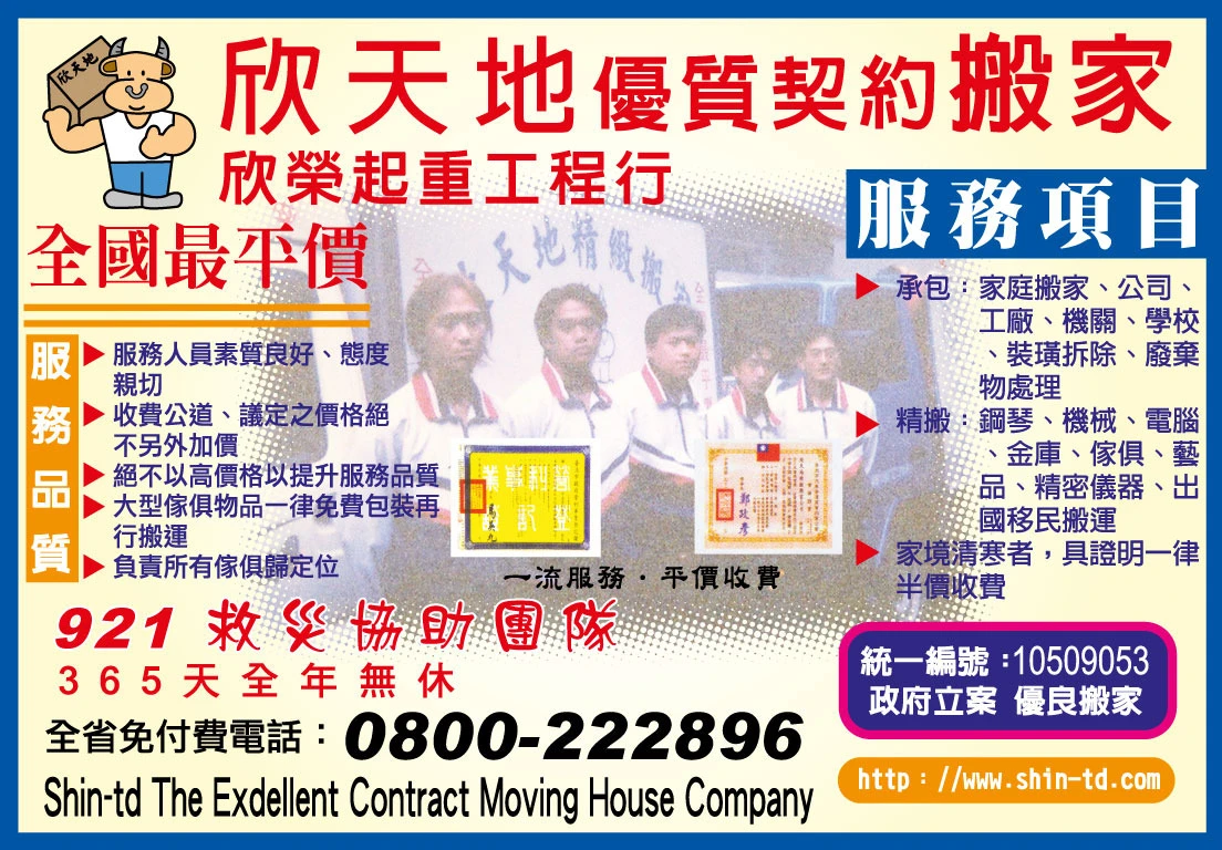 欣天地優質契約搬家 ◆公司網址:www.shin-td.com.tw ◆公司地址:台北